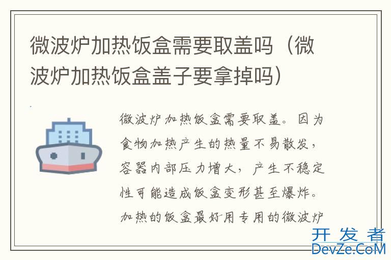 品牌型号:美的微波炉 系统:PC20M5T微波炉加热饭盒需要取盖。因为食物加热产生的热量不易散发,容器内部压力增大,产生不稳定性可能造成饭盒变形甚至爆炸。加热的饭盒最好用专用的微波炉饭盒,忌金属器皿或