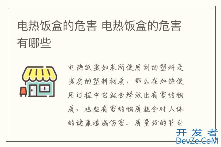 品牌型号:小熊电热饭盒 系统:DFH-C15B9开发者_运维知识库 电热饭盒如果所使用到的塑料是劣质的塑料材质,那么在加热使用过程中它就会释放出有害的物质,这些有害的物质就