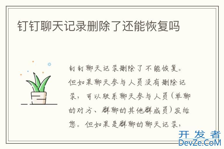 开发者_运维问答 品牌型号:iPhone13 pro pro 系统:IOS15.4 软件版本:钉钉6.5.5钉钉聊天记录删除了不能恢复。但如果聊天参与人员没有删除记录,可以联系聊天参与人
