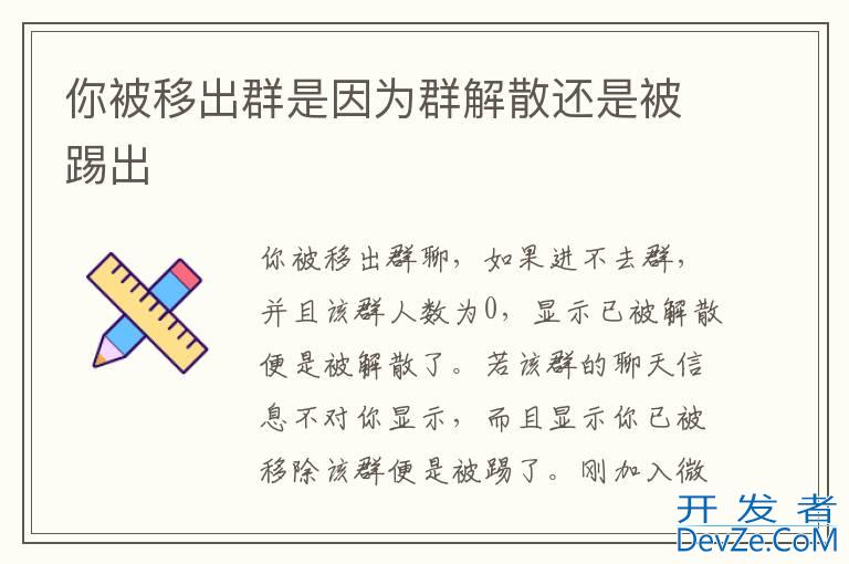 品牌型号:iPhone13 pro pro 系统:IOS15.4 软件版本:微信8.0.25你被移出群聊,如果进不去群,并且该群人数为0,显示已被解散便是被解散了。若该群的聊天信息不对你显示,而且显示