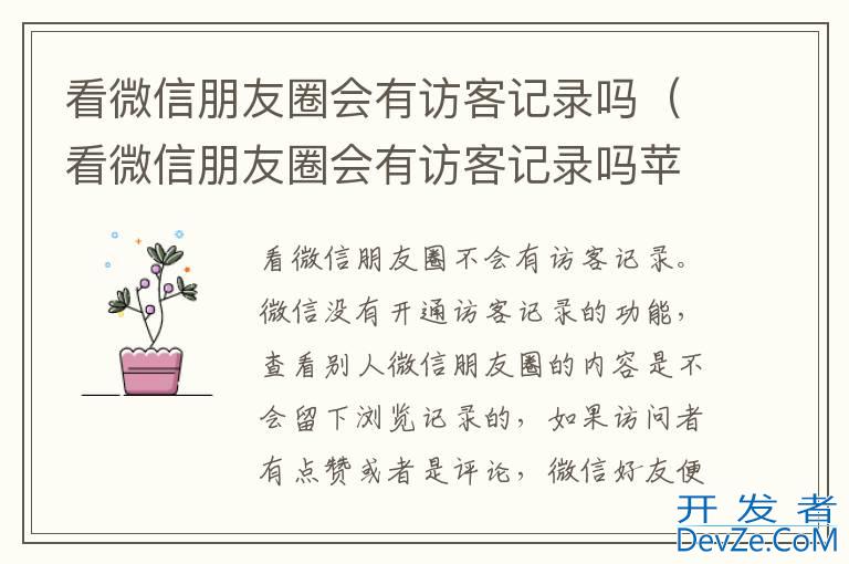 品牌型号:iPhone13 pro pro 系统:iOS 15.6.1 软件版本:微信8.0.27看微信朋友圈不会有访客记录。微信没有开通访客记录的功能,查看别人微信朋友圈的内容是不会留下浏览记录的,