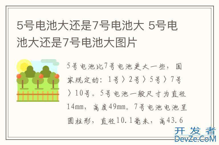 品牌型号:南孚电池 系统:5号/7号电池5号电池比7号电池更大一些,国家规定的:1号〉2号〉5号〉7号〉10号。5号电池一般尺寸为直径14mm,高度49mm。7号电池电池呈圆柱形,直径10.1毫米,高