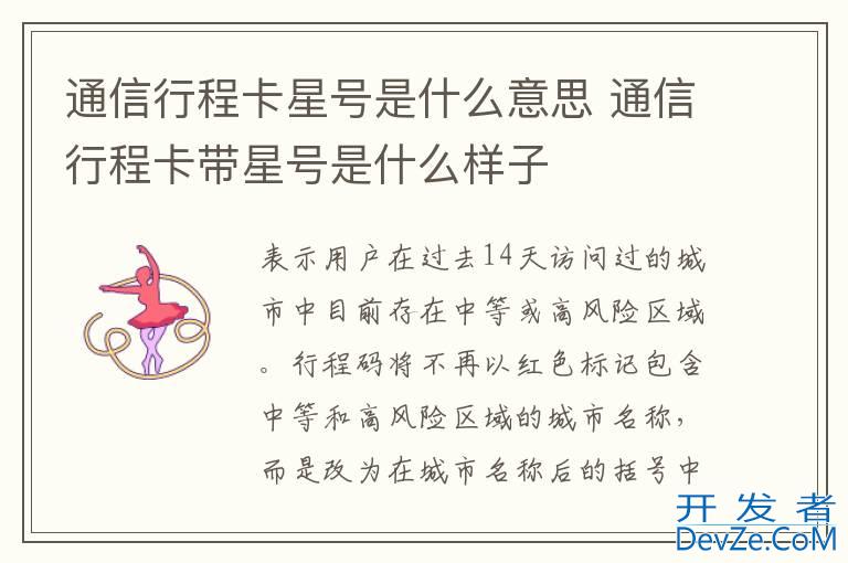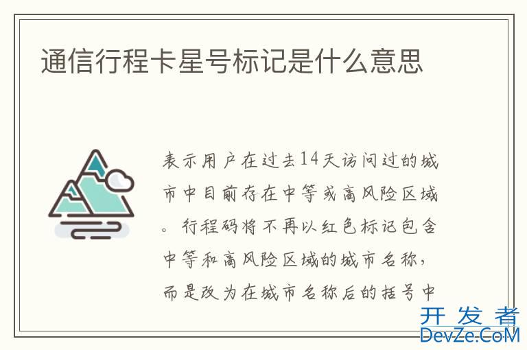 品牌型号:iPhone13 pro pro 系统:iOS 15.6.1 软件版本:微信8.0.26通信行程卡星号表示用户在过去14天访问过的城市中目前存在中等或高风险区域,但这并不意味着实际访问过这些