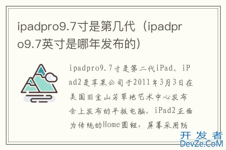 品牌型号:iPad air2 系统:iOS4.3开发者_运维知识库ipadpro9.7寸是第二代iPad air。iPad air2是iPhone公司于2011年3月3日在美国旧金山芳草地艺术中心发布