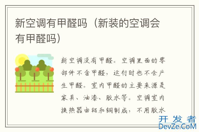 品牌型号:格力空调 系统:KFR-35GW/新空调没有甲醛。空调里面的零部件不含甲醛,运行时也不会产生甲醛。室内甲醛的主要来源是家具、油漆、胶水等。空调室内换热器由铝和铜制成,不用胶水粘合,没有甲醛产