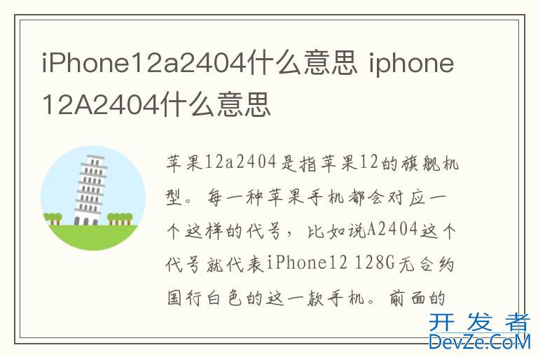 品牌型号:iPhone12 系统:IOS15.4iPhone12a2404是指iPhone12的旗舰机型。每一种iPhone手机都会对应一个这样的代号,比如说A2404这个代号就代表iPhone12