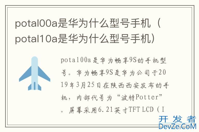 品牌型号:华为畅享 9SS 系统:EMUI 12potal00a是华为畅享 9SS的手机型号。华为畅享 9SS是华为公司于2019年3月25日在陕西西安发布的手机,内部代号为“波特Potter”。屏幕