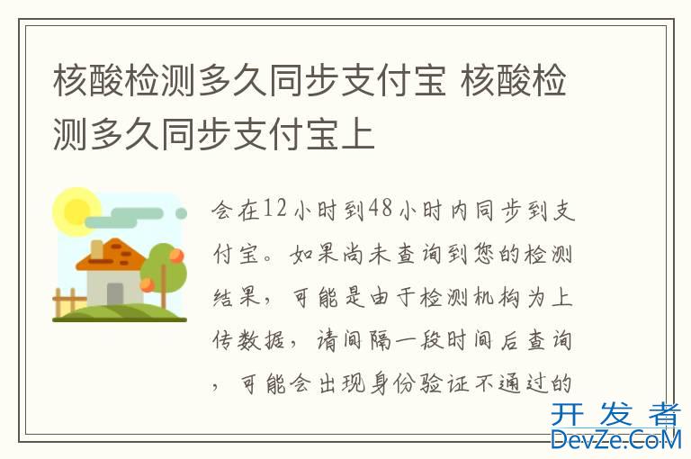 品牌型号:iPhone13 pro pro 系统:iOS 15.6.1 软件版本:支付宝10.2.90核酸检测结果会在12小时到48小时内同步到支付宝。如果尚未查询到您的检测结果,可能是由于检测机构为