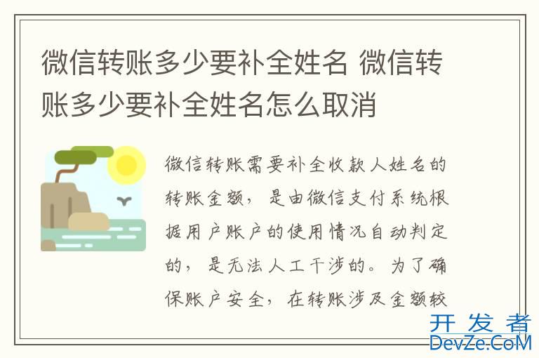 品牌型号:iPhone13 pro pro 系统:IOS15.5 软件版本:微信8.0.26微信转账需要补全收款人姓名的转账金额,是由微信支付系统开发者_开发问答根据用户账户的使用情况自动判定的,是无