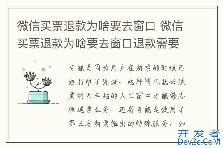 品牌型号:iPhone13 pro pro 系统:iOS 16.0 软件版本:微信8.0.28微信买票退款要去窗口可能是因为用户在购票的时候已经打印了凭证,这种情况就必须要到火车站的人工窗口才能够办理