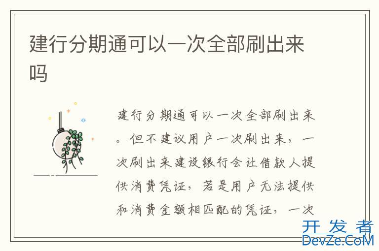 品牌型号:iPhone13 pro pro 系统:iOS 15.6.1 软件版本:中国建设银行5.7.5.001建行分期通可以一次全部刷出来。但不建议用户一次刷出来,一次刷出来建设银行会让借款人提供消
