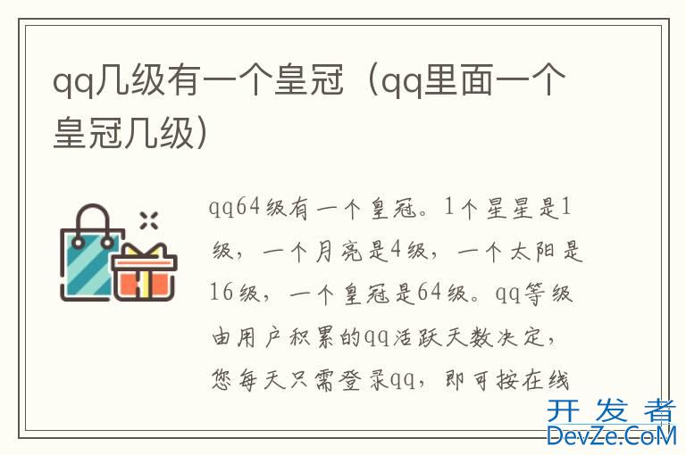 品牌型号:华为P50 系统:HarmonyOS3 软件版本:QQ9.6.2.28755qq64级有一个皇冠。1个星星是1级,一个月亮是4级,一个太阳是16级,一个皇冠是64级。其中QQ等级最初是星星,