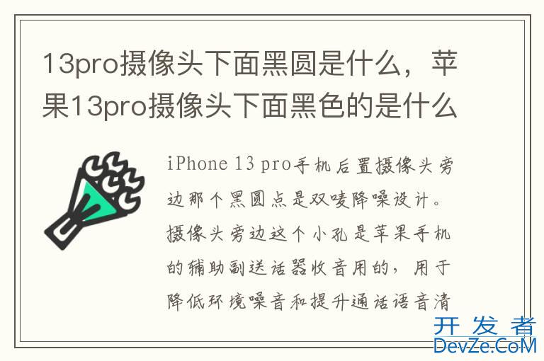 品牌型号:iPhone13 pro Pro 系统:iOS 16.0iPhone13 pro pro手机后置摄像头旁边那个黑圆点是双唛降噪设计。摄像头旁边这个小孔是iPhone手机的辅助副送话器收音用的