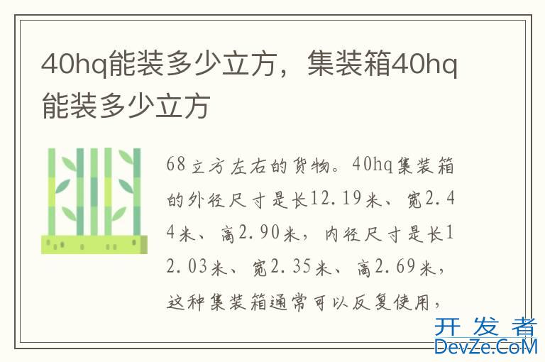 品牌型号:iPhone13 pro pro 系统:iOS 16.0开发者_Python百科40hq能装68立方左右的货物。40hq集装箱的外径尺寸是长12.19米、宽2.44米、高2.90米,内径尺寸