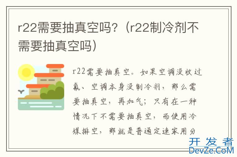 品牌型号:格力空调 系统:KFR-35GWNhGc1Br22需要抽真空。如果空调没收过氟、空开发者_JAVA百科调本身没制冷剂,那么需要抽真空,再加气;只有在一种情况下不需要抽真空,而使用冷媒排空,那