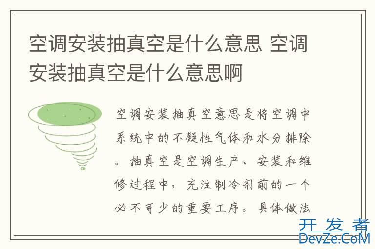 品牌型号:小米空调 系统:KFR-35GWN1A1空调安装抽真空意思是将空调中系统中的不凝性气体和水分排除。抽真空是空调生产、安装和维修过程中,充注制冷剂前的一个必不可少的重要工序。具体做法是用真空泵