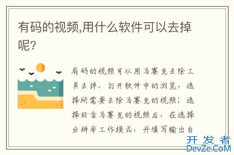 品牌型号:vivo X70 Pro 系统:OriginOS 1.0 软件版本:马赛克去除工具1.2有码的视频可以用马赛克去除工具去掉。打开软件中的浏览,选择所需要去除马赛克的视频;选择好含马赛克的视