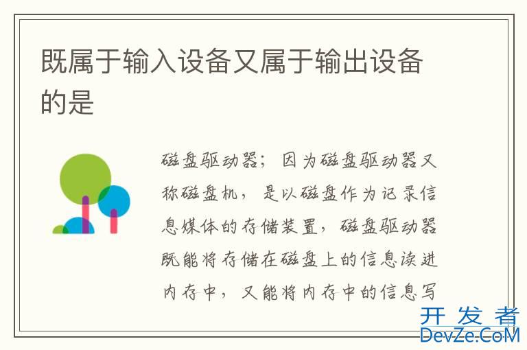 品牌型号:磁盘阵列Mercury 系统:RAID 24t既属于输入设备又属于输出设备的是磁盘驱动器;因为磁盘驱动器又称磁盘机,是以磁盘作为记录信息媒体的存储装置,磁盘驱动器既能将存储在磁盘上的信息读进
