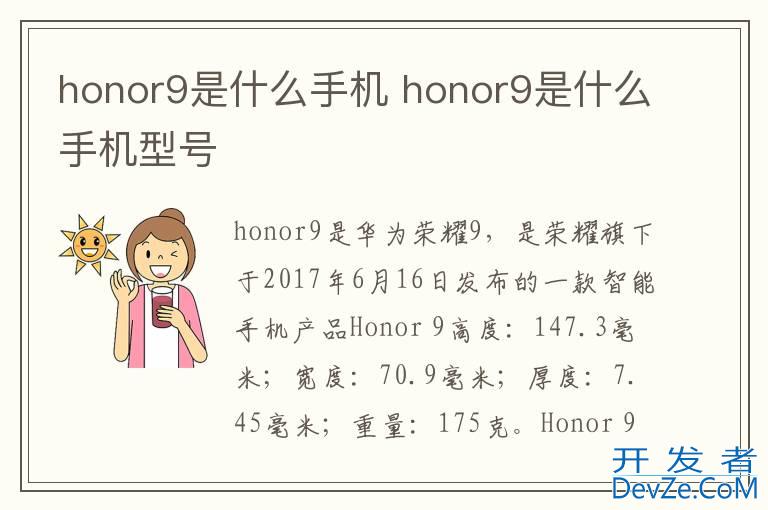 品牌型号:Honor 9 系统:EMUI 8.0honor9是华为荣耀9,是荣耀旗下于2017年6月16日发布的一款智能手机产品Honor 9高度:147.3毫米;宽度:70.9毫米;厚度:7.45毫