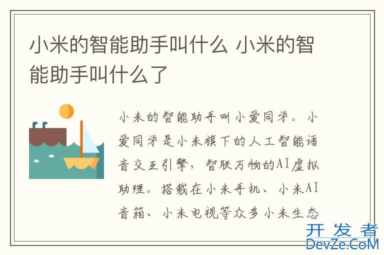 品牌型号:小米12 Pro 系统:MIUI 13 软件版本:小爱同学5.0小米的智能助手叫小爱同学。小爱同学是小米旗下的人工智能语音交互引擎,智联万物的AI虚拟助理。搭载在小米手机、小米AI音箱、小米