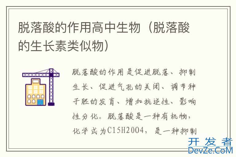 脱落酸的作用是促进脱落、抑制生长、促进气孔的关闭、调节种子胚的发育、增加抗逆性、影响性分化。脱落酸是一种有机物,化学式为C15H20O4,是一种抑制生长的植物激素,因能促使叶子脱落而得名。可能广泛分布