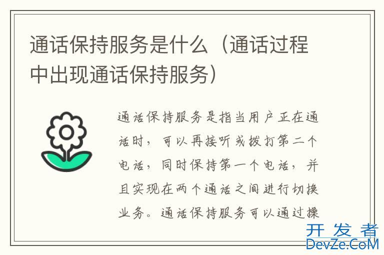 品牌型号:iPhone13 pro pro 系统:IOS15.4通话保持服务是指当用户正在通话时,可以再接听或拨打第二个电话,同时保持第一个电话,并且实现在两个通话之间进开发者_JAVA技巧行切换业务