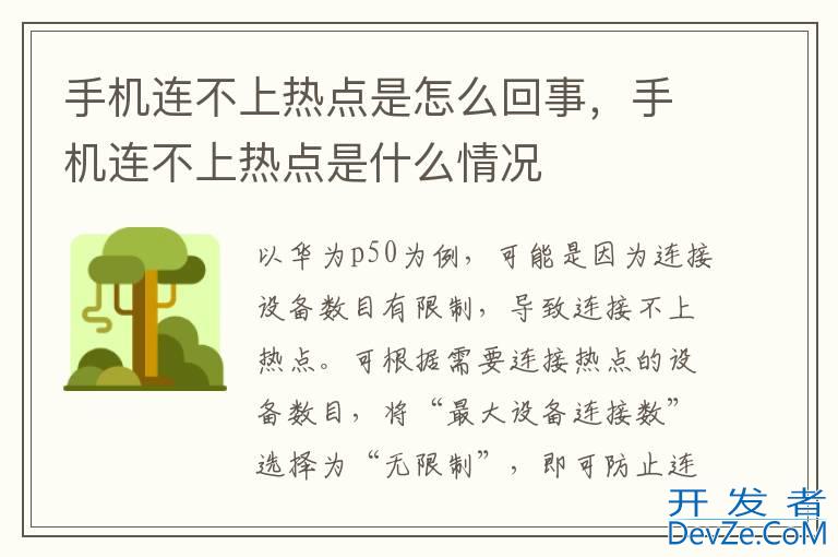 品牌型号:华为p50 系统:HarmonyOS 3以华为p50为例,可能是因为连接设备数目开发者_如何学Python有限制,导致连接不上热点。可根据需要连接热点的设备数目,将“最大设备连接数”选择为“
