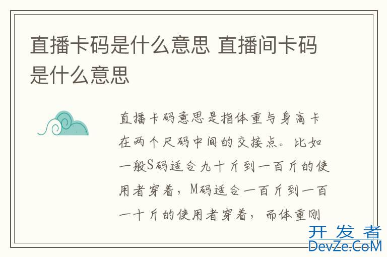 品牌型号:iPhone13 pro pro 系统:iOS 15.6.1 软件版本:抖音21.8.0直播卡码意思是指体重与身高卡在两个尺码中间的交接点。比如一般S码适合九十斤到一百斤的使用者穿着,M码适
