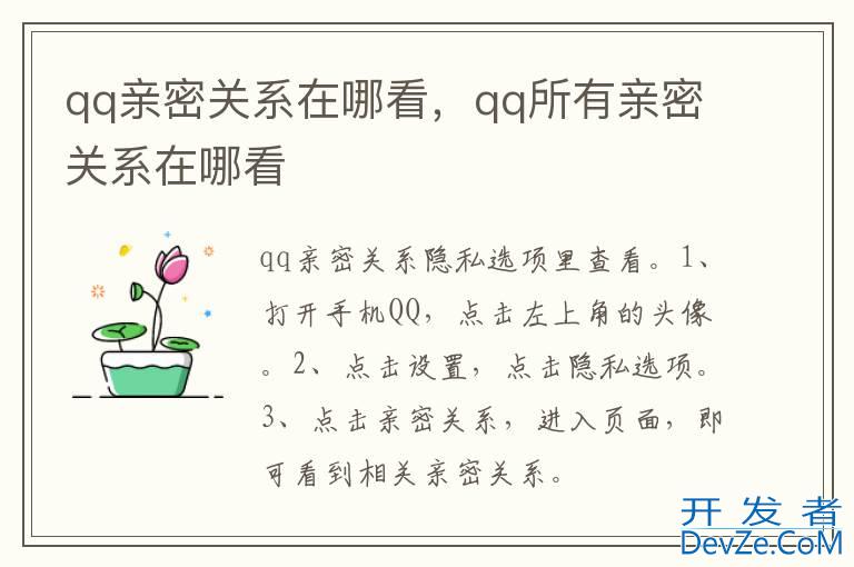 品牌型号:iPhone13 pro 系统:IOS15.4.1 软件版本:QQV8.8.85以QQV8.8.85为例,qq亲密关系隐私选项里查看。分为3步,具体步骤如下:1进入QQ头像打开手机QQ,点击