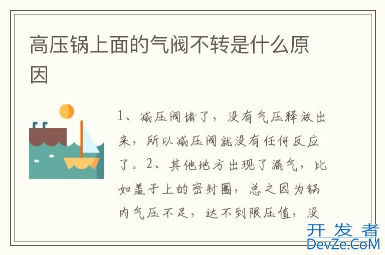 品牌型号:苏泊尔高压锅 系统:SY50YC90861、减压阀堵了,没有气压释放出来,所以减压阀就没有任何反应了。如果减压阀堵了建议更换安全阀里的安全溶片。2、高压锅气阀不转也有可能是其他地方出现了漏气