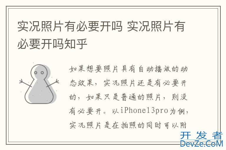 品牌型号:iPhone13pro max 系统:IOS15.4如果想要照片具有自动播放的动态效果,实况照片还是有必要开的,如果只是普通的照片,则没有必要开。以iPhone13pro max为例,实况照