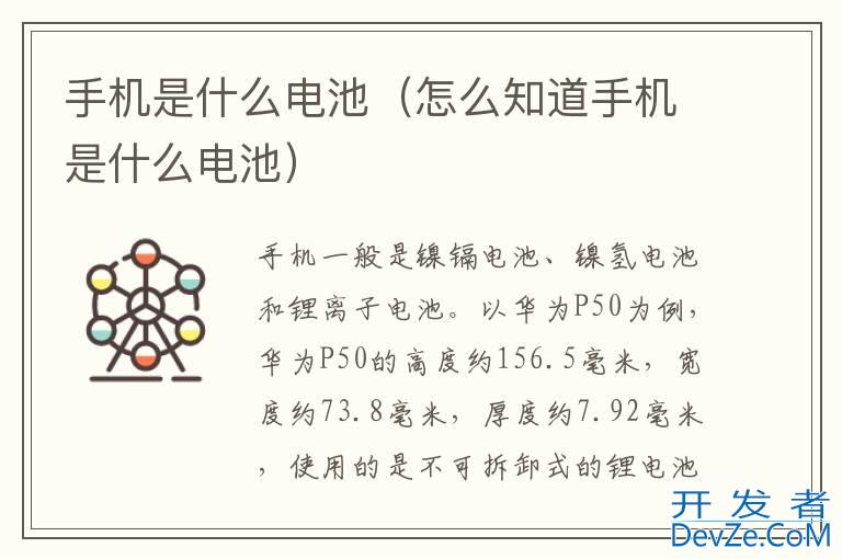 品牌型号:华为P50 系统:HarmonyOS3手机一般是镍镉电池、镍氢电池和锂离子电池。以华为P50为例,华为P50采用6.5英寸OLED屏幕;高度约156.5毫米,宽度约73.8毫米,厚度约7.9