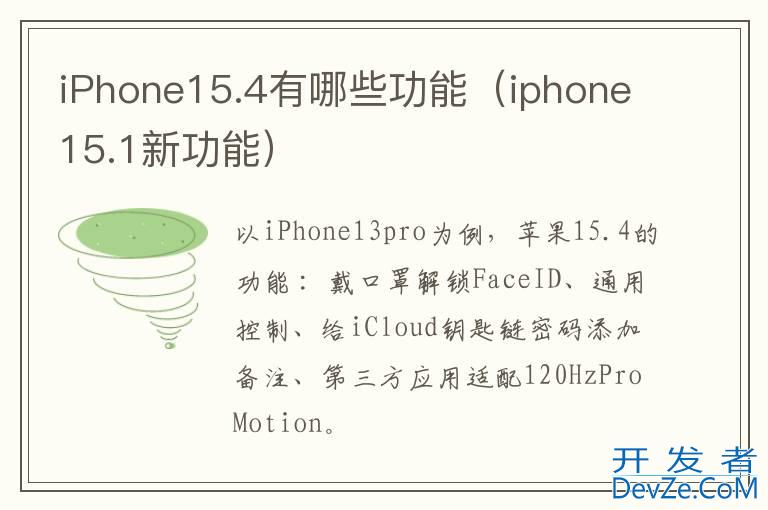 品牌型号:iPhone13pro max 系统:IOS15.4以iPhone13pro max为例,i开发者_如何学运维Phone15.4的功能 :1、戴口罩解锁FaceID:FaceID只有在为全脸
