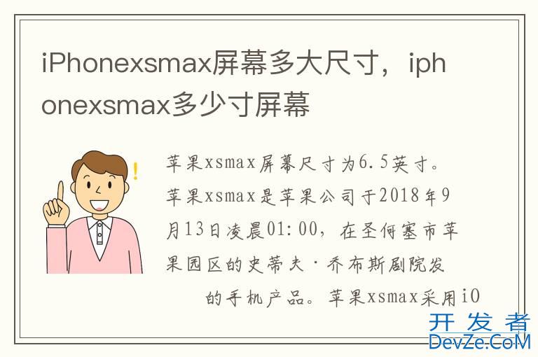 品牌型号:iPhoneXSMax 系统:iOS12iPhonexsmax屏幕尺寸为6.5英寸。iPhonexsmax是iPhone公司于2018年9月13日凌晨01:00,在圣何塞市iPhone园区的
