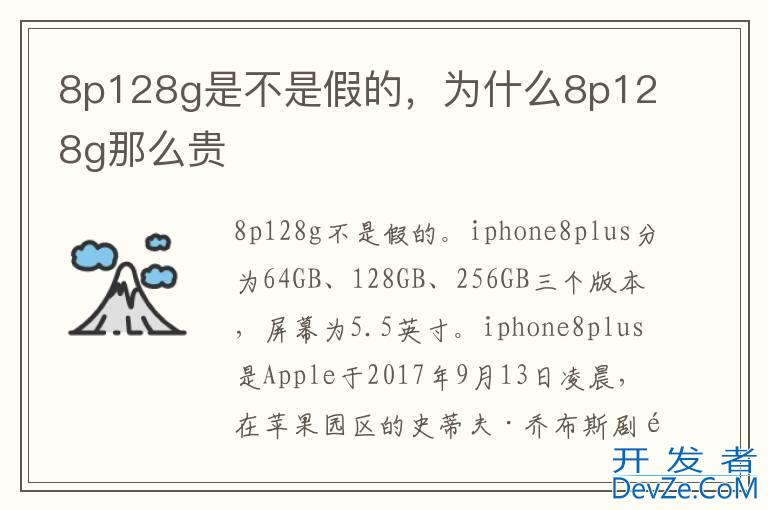 品牌型号:iPhone8plus 系统:IOS15.4开发者_JS百科 8p128g不是假的。iPhone8plus分为64GB、128GB、256GB三个版本,屏幕为5.5英寸