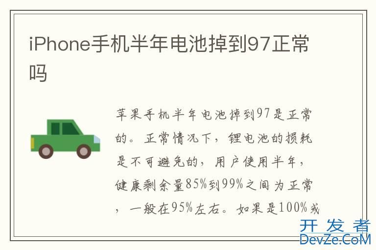 品牌型号:iPhone13pro max 系统:IOS15.4iPhone手机半年电池掉到97是正常的。正常情况下,锂电开发者_如何学Go池的损耗是不可避免的,用户使用半年,健康剩余量85%到99%之