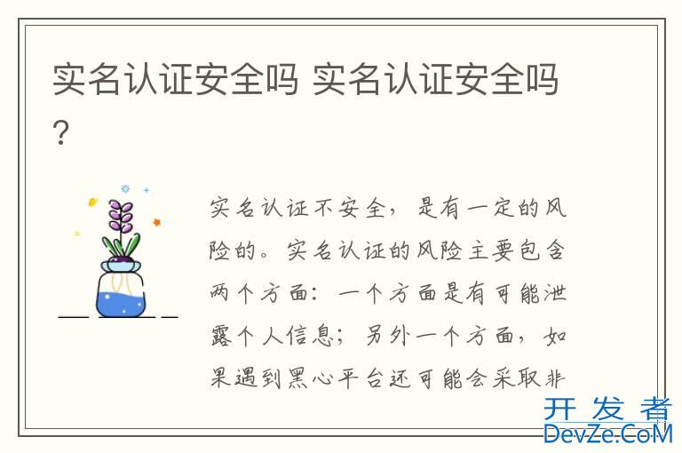 品牌型号:华为P50 系统:HarmonyOS3开发者_JS百科 实名认证不安全,是有一定的风险的。实名认证的风险主要包含两个方面:一个方面是有可能泄露个人信息;另外
