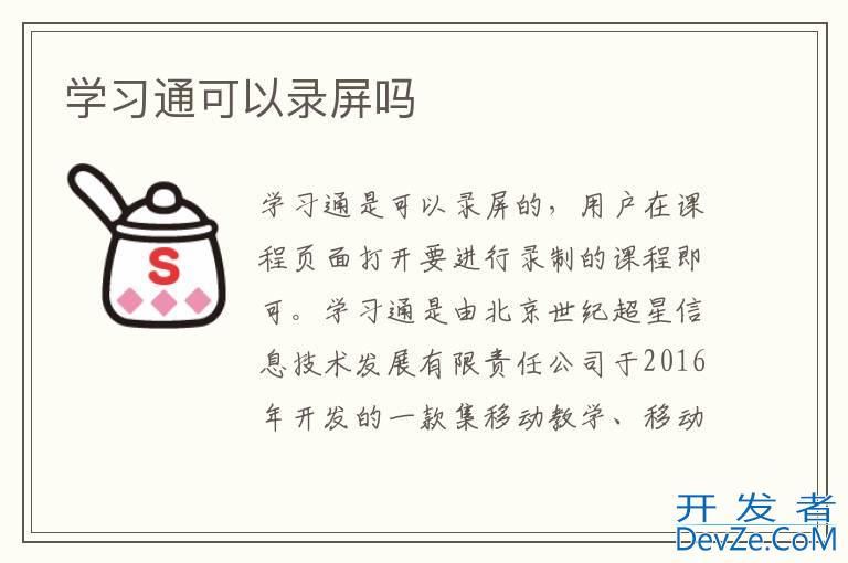 品牌型号:华为 P50 Pocket 系统:HarmonyOS 3 软件版本:学习通2.1.26.1122学习通是可以录屏的,用户在课程页面打开要进行录制的课程即可。学习通是由北京世纪超星信息技术发展