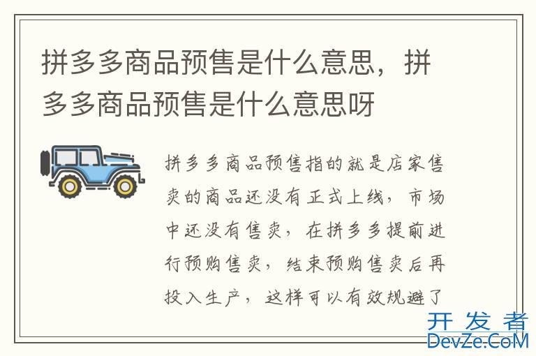 品牌型号:iPhone13 pro pro 系统:IOS15.4 软件版本:拼多多6.9.0拼多多商品预售指的就是店家售卖的商品还没有正式上线,市场中还没有售卖,在拼多多提前进行预购售卖,结束预购售卖