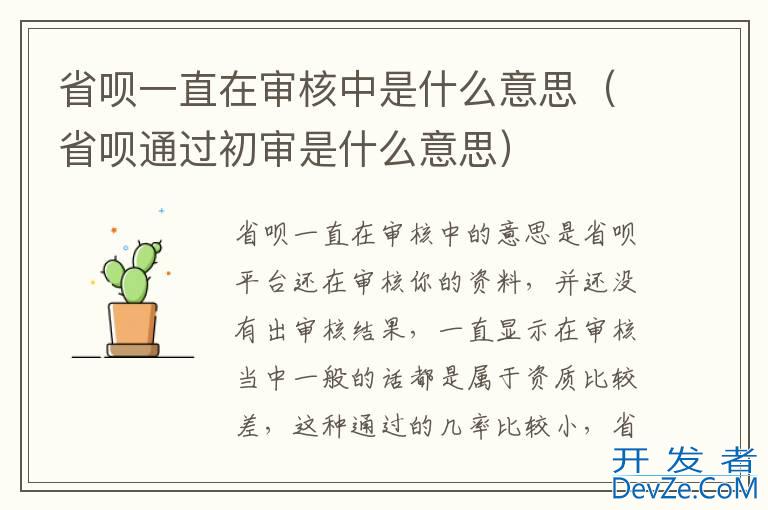 开发者_开发百科品牌型号:华为P50 系统:HarmonyOS3 软件版本:省呗8.13.0省呗一直在审核中的意思是省呗平台还在审核你的资料,并还没有出审核结果,一直显示在审核当中一般的话都是属于资质