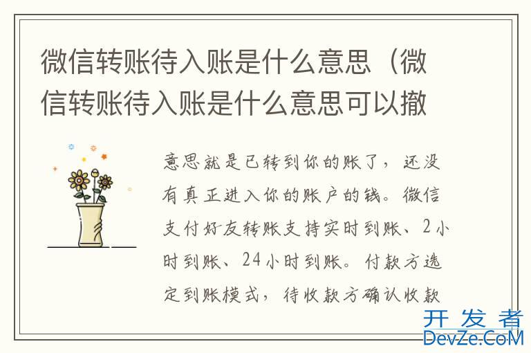 品牌型号:华为P50 系统:HarmonyOS 3 软件版本:微信8.0.25微信转账待入账的意思就是已转到你的账了,还没有真正进入你的账户的钱。因为2016年12月1日起,微信支付好友转账支持实时到