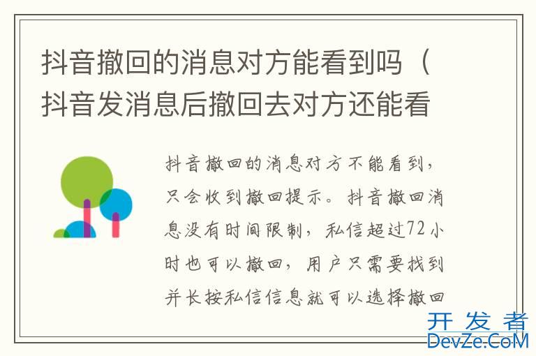 品牌型号:iPhone13 pro pro 系统:iOS 15.6 软件版本:抖音21.8.0抖音撤回的消息对方不能看到,只会收到撤回提示。抖音撤回消息没有时间限制,私信超过72小时也可以撤回,用户只