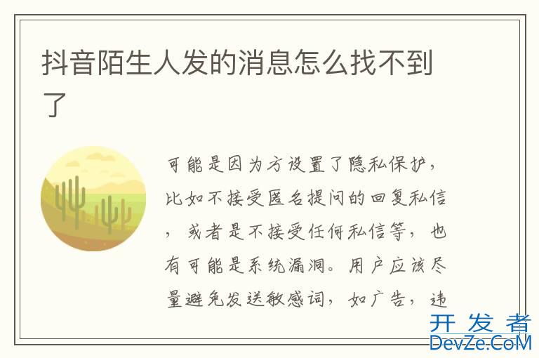 品牌型号:华为P50 系统:HarmonyOS3 软件版本:抖音20.1.0抖音陌生人发的消息找不到了,可能是因为方设置了隐私保护,比如不接受匿名提问的回复私信,或者是不接受任何私信等,也有可能是系统