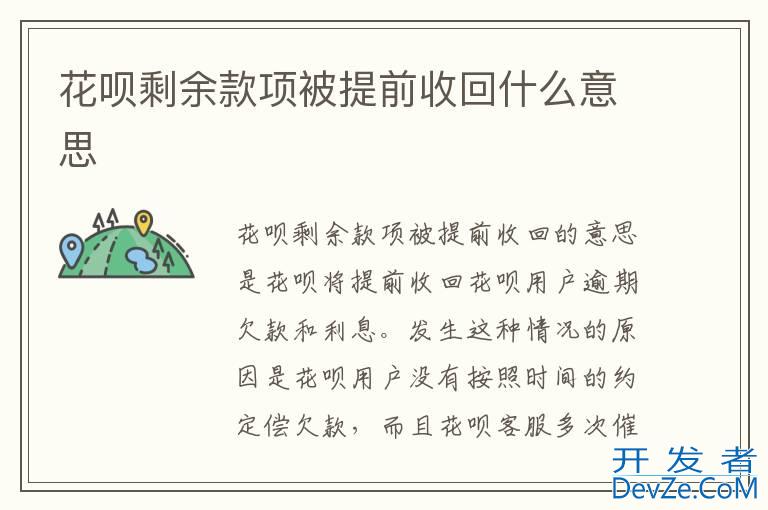 品牌型号:华为P50 系统:HarmonyOS3 软件版本:支付宝10.2.60.8000花呗剩余款项被提前收回的意思是花呗将提前收回花呗用户逾期欠款和利息。发生这种情况的原因是花呗用户没有按照时间的