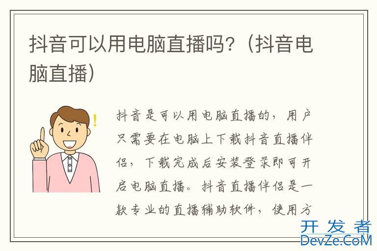 品牌型号:iPhone13 pro pro 系统:IOS15.5 软件版本:抖音21.5.0抖音是可以用电脑直播的,用户只需要在电脑上下载抖音直播伴侣,下载完成后安装登录即可开启电脑直播。抖音直播伴侣