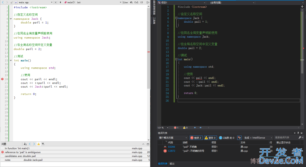 目录1 using 编译指令与同名全局变量1.1 在同名全局变量声明前使用1.2 在同名全局变量声明后的全局区中使用1.3 在同名全局变量声明后的代码块中使用2 using 编译指令与同名局部变量2.1 在同名局部变量声明前的全局区