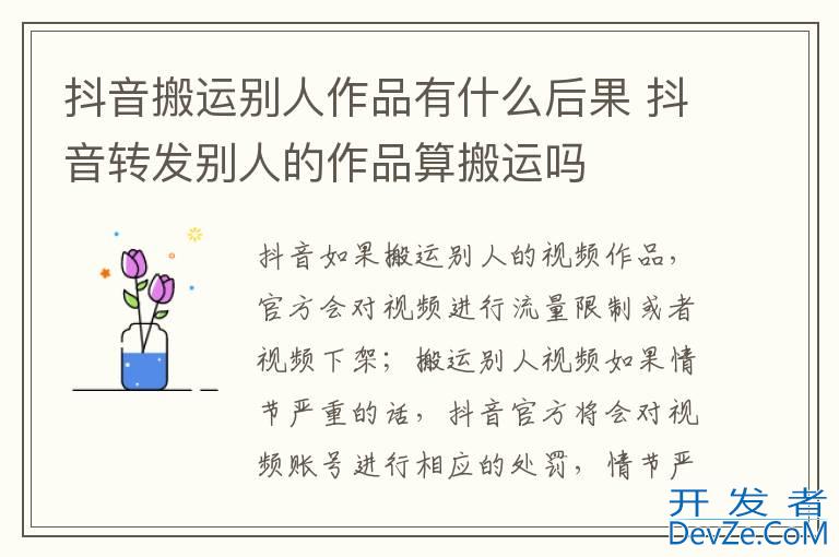 品牌型号:华为P50 系统:HarmonyOS3 软件版本:抖音20.5.0抖音如果搬运别人的视频作品,官方会对视开发者_JAVA百科频进行流量限制或者视频下架;搬运别人视频如果情节严重的话,抖音官方