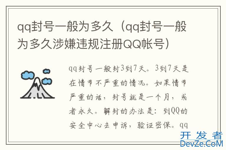 品牌型号:iPhone13 pro pro 系统:iOS 15.6.1 软件版本:QQ8.9.5q封号一般封3到7天。3到7天是在情节不严重的情况。如果情节严重的话,封号就是一个月,或者永久。解封的办