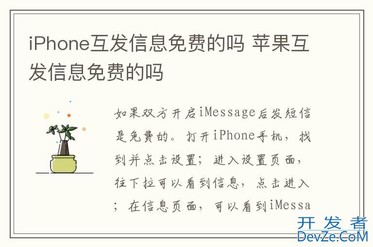 品牌型号:iPhone13 pro pro 系统:IOS15.4如果双方开启iMessage后发短信是免费的。打开iPhone手机,找到并点击设置;进入设置页面,往下拉可以看到信息,点击进入;在信息页