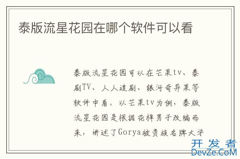 品牌型号:华为 P50 Pocket 系统:HarmonyOS 3 软件版本:芒果TV6.1.13开发者_如何学Go 泰版流星花园可以在芒果tv、泰剧TV、人人追剧、银河奇异果等软件中看。以芒果tv为
